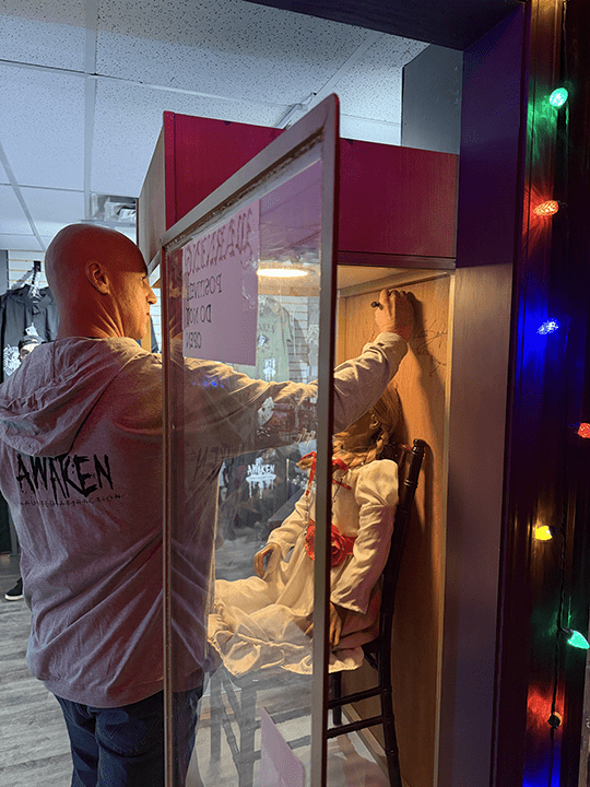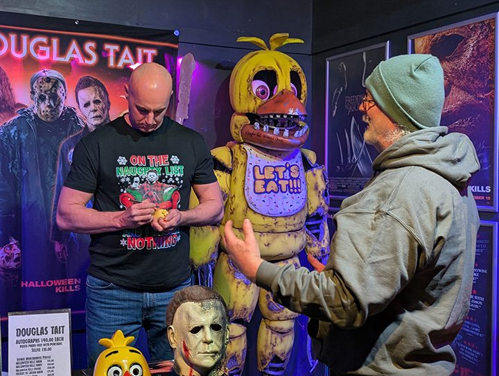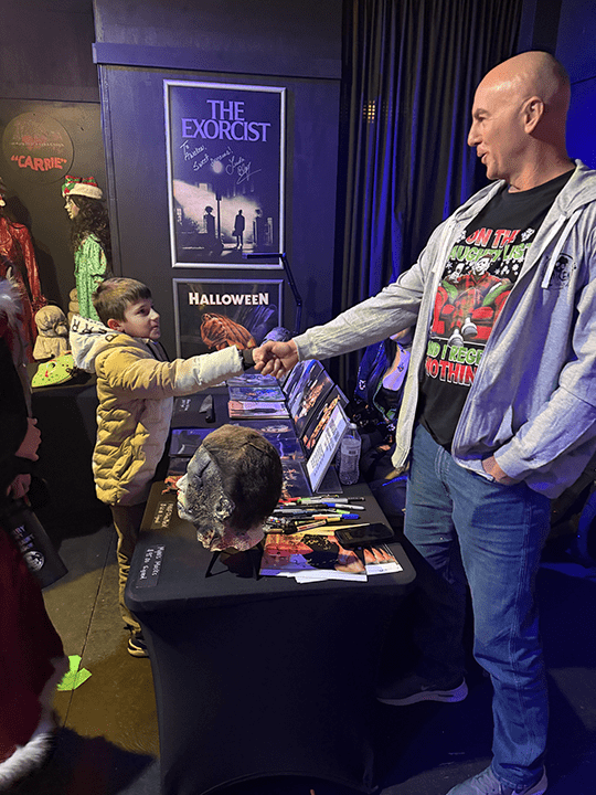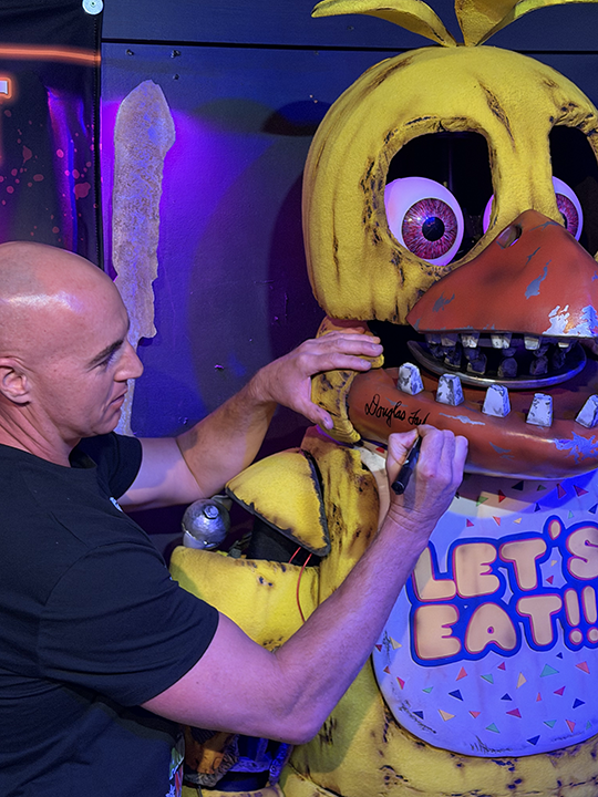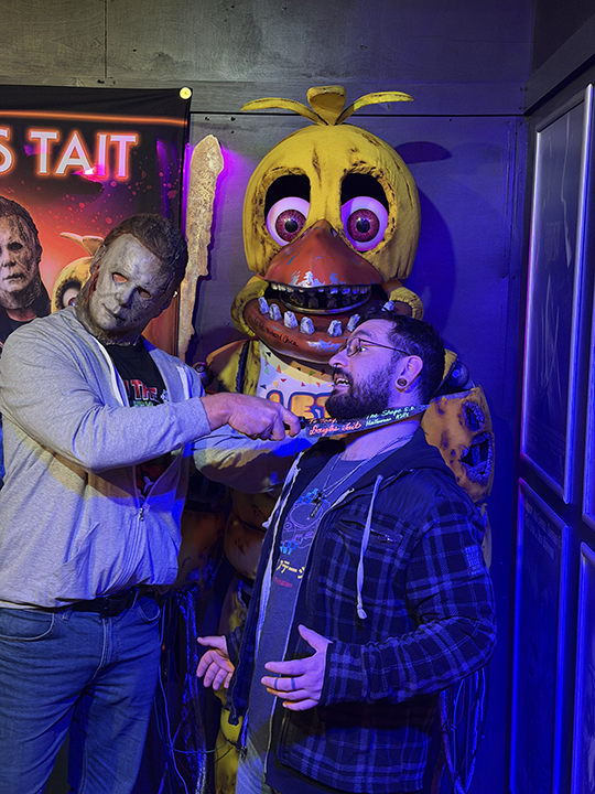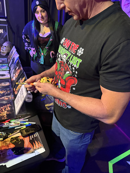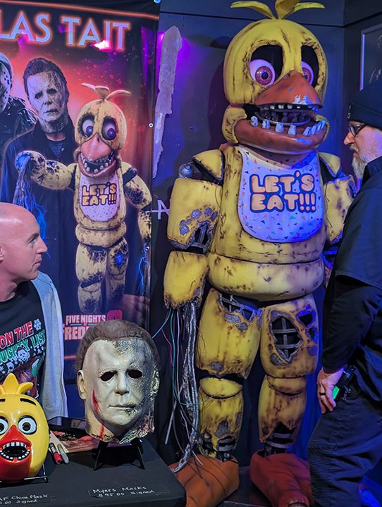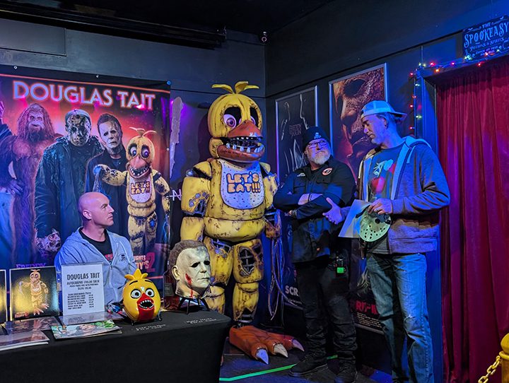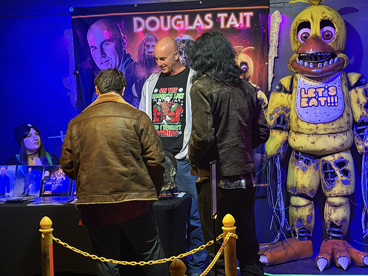 Jingle Hells 2025 was a success! Having back actor/stuntman Douglas Tait was no disappointment. Tait played characters in several films, including Freddy vs. Jason, Annabelle Comes Home, Halloween Kills, but his most recent was film character  "Withered Chica" in the record breaking Five Nights at Freddy's 2 that hit theaters the weekend before Doug's visit. Q106, our local Rock station paid a visit on Friday night along with CBS 6 News!